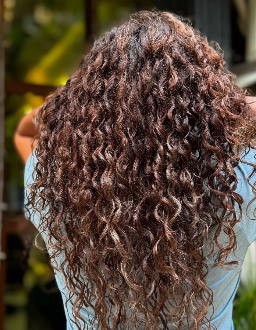 My signature service is the no-bleach balayage, perfect for adding dimension without damage. This gallery showcases a range of natural looks, from rich mochas and chocolates to warm caramels, all hand-painted to make each curl pop. This technique is ideal for your first time coloring or if hair health is your top priority.
