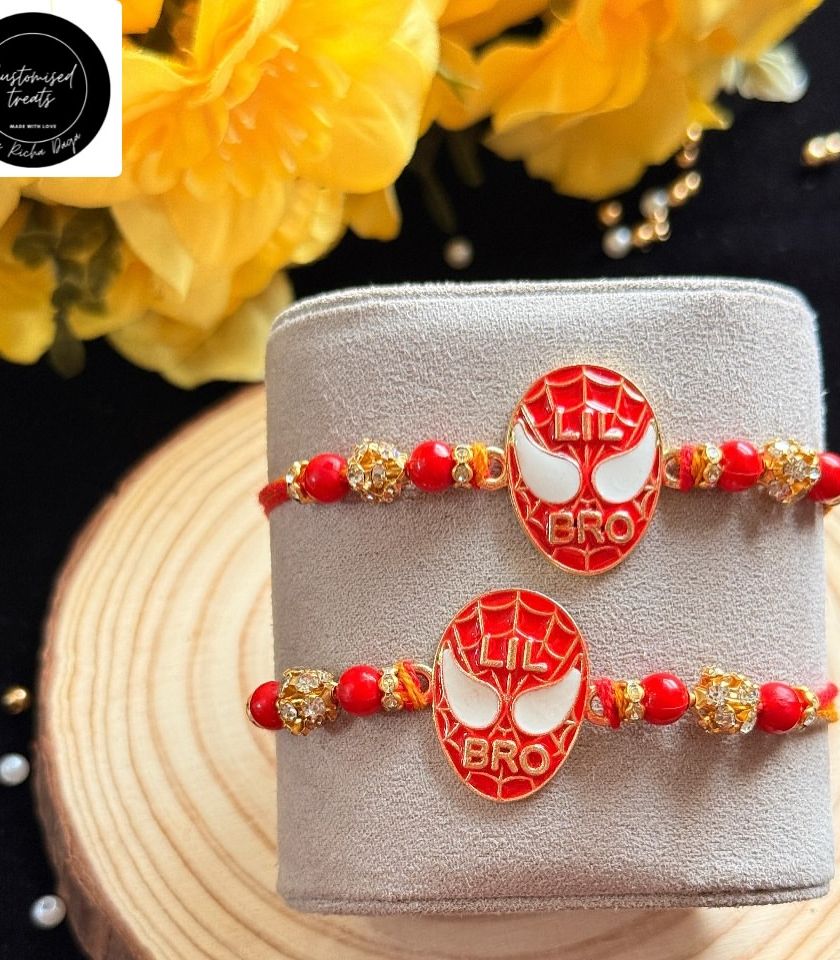 Make Raksha Bandhan extra special for the little ones with my collection of kids' rakhis. All designs are cute, safe, and mom-approved, featuring their favorite characters like Spiderman and Pikachu, or fun motifs like unicorns and dinosaurs.