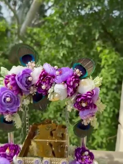 My Jhulas (swings) are made with soft cushions, flowers, and peacock feathers - perfect for Bal Gopal’s throne. I also make Krishna shringar accessories like matching jewellery sets and mukuts that go with the poshaks.