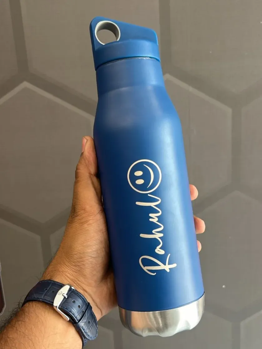 My custom drinkware is a popular choice for both corporate and personal gifts. I offer a variety of options, including stainless steel temperature bottles that display the liquid's temperature, and durable steel mugs, all of which can be personalized with names or logos.