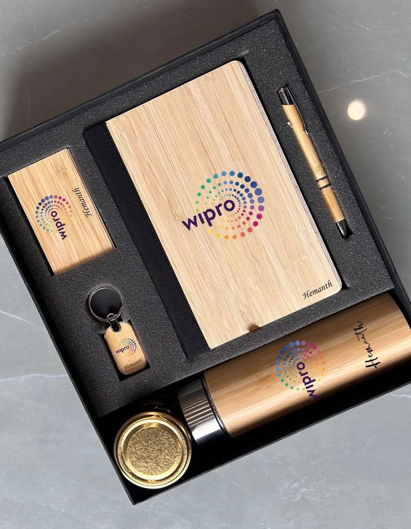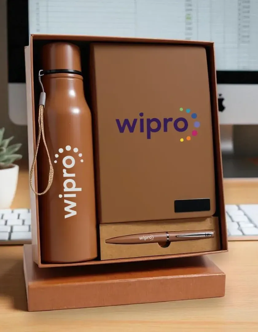 I specialize in creating branded merchandise for companies of all sizes, from startups to large corporations like Wipro and Google. These sets are perfect for employee onboarding, client appreciation, or event giveaways and can be fully customized with your company's logo.