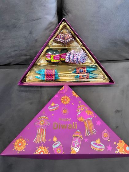 We create personalized gift hampers for Indian festivals like Diwali, Raksha Bandhan and other celebrations. Our hampers combine traditional elements with customized gifts - including handmade decorative items, sweets, LED lights, and personalized products like mugs, keychains or wallets.