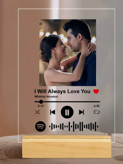- Spotify Music Plaque: Acrylic or wooden frame printed with a photo and a scannable Spotify code for a specific song.