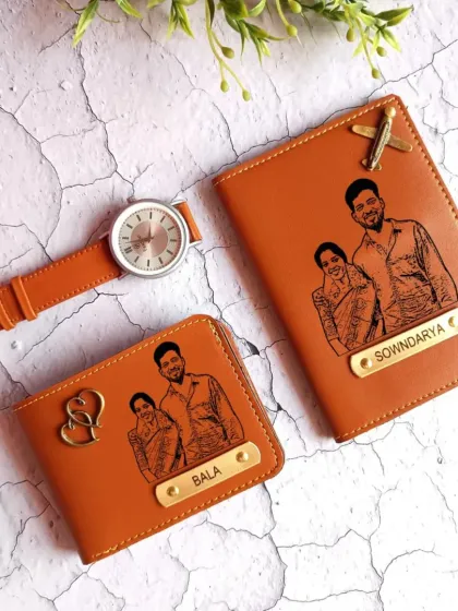 - Wallet (Men) or Clutch (Women): Synthetic vegan leather (Rexine) with textured finish options like croc pattern or plain matte. Includes standard cash compartments and 3-4 card slots.