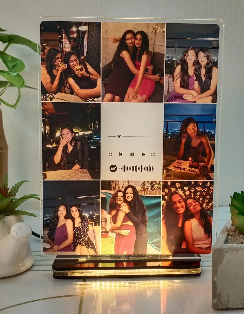 Turn your favorite memories and songs into lasting keepsakes. I print your photos on a variety of items including cushions, clocks, and wallets, and create scannable Spotify code plaques and keychains that play your special song.