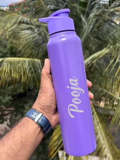 Stay hydrated in style with a personalized bottle, mug, or tumbler. I engrave names and simple designs on various types of drinkware, including temperature-display bottles and travel mugs, available in many colors.