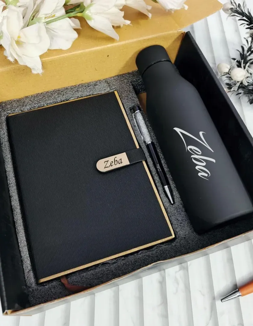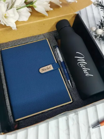 Make a great impression with professional and personalized corporate gifts. I create matching sets of diaries, pens, and bottles that are perfect for new employee welcome kits, client appreciation, or event giveaways.