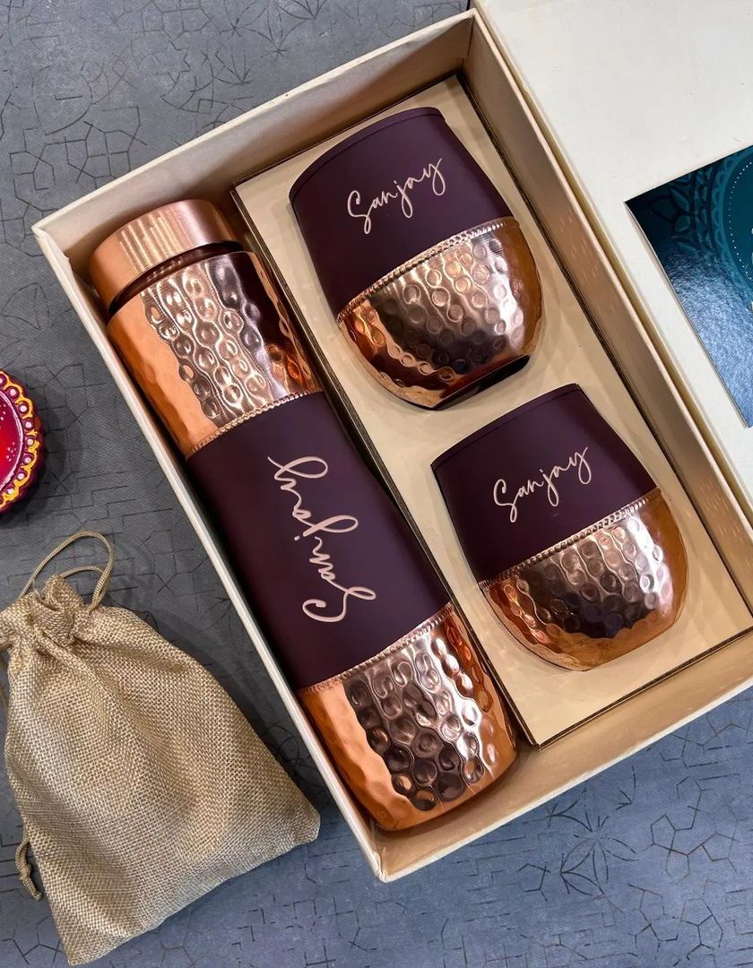 Light up the festive season with my custom Diwali gift boxes. I offer curated sets with personalized items like copper bottles and mugs, diaries, pens, and traditional sweets, perfect for family, friends, or corporate clients.