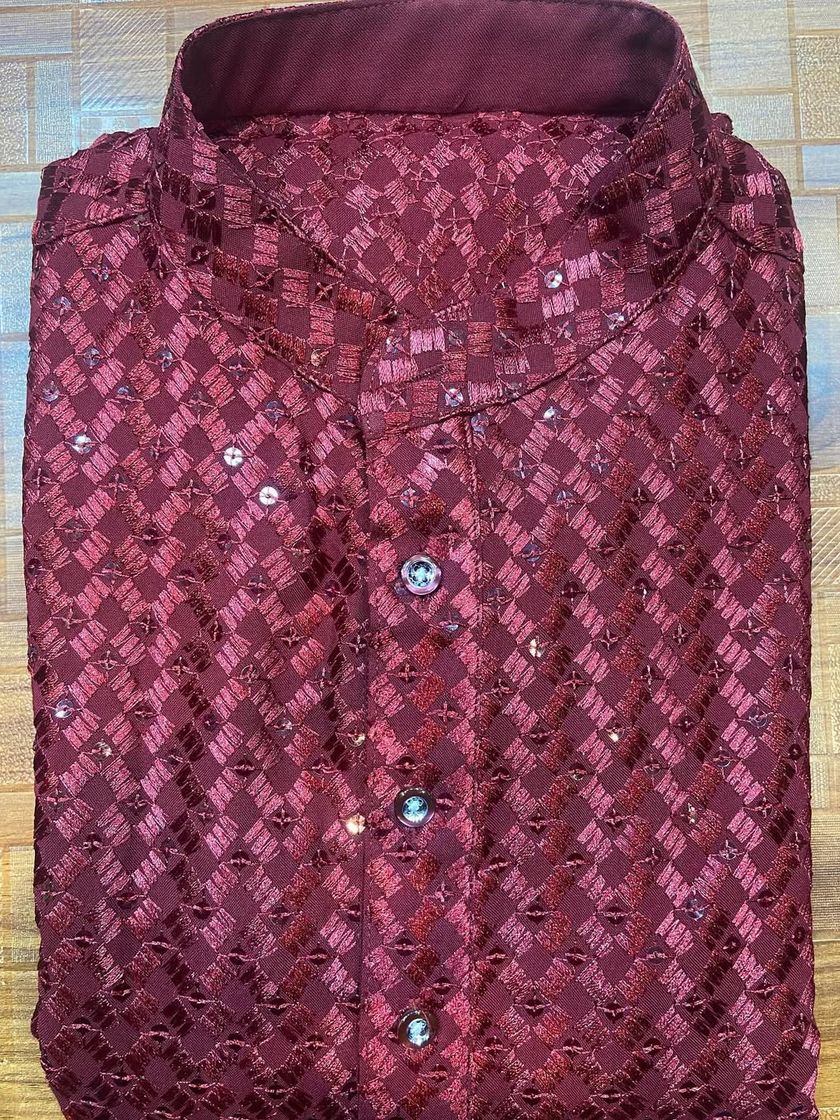 Explore my extensive collection of authentic Chikankari fabric, a timeless choice for elegant kurtas and sherwanis. I source various patterns and a wide palette of colors, many featuring delicate sequin work for a festive touch.