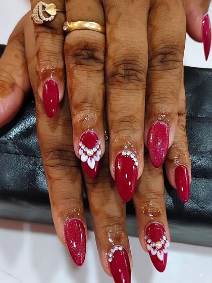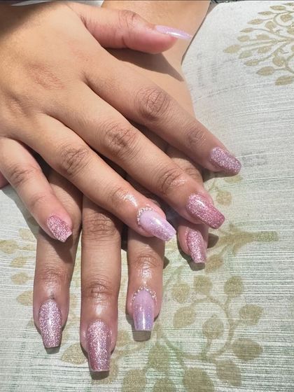 We specialize in creative nail art and extensions, offering a diverse range of styles including ombre, chrome, and bridal designs. Our services feature both gel and acrylic extension techniques, complemented by 3D nail art with embellishments like rhinestones and bows.