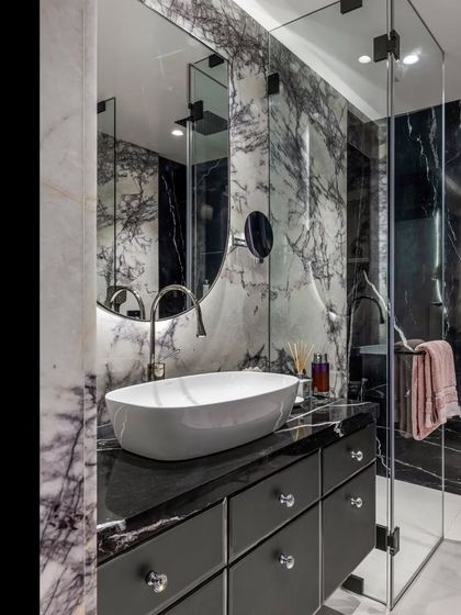 Bathrooms don't have to be boring. I love designing these small spaces to be little jewel boxes full of personality and style. Whether it's through bold tiles, unique textures, custom mirrors, or dramatic lighting, a well-designed bathroom can be a delightful surprise.