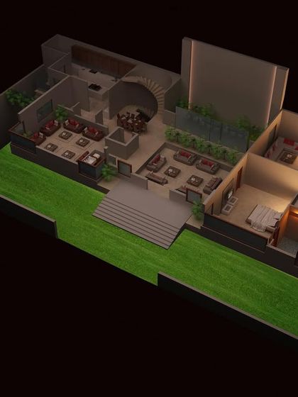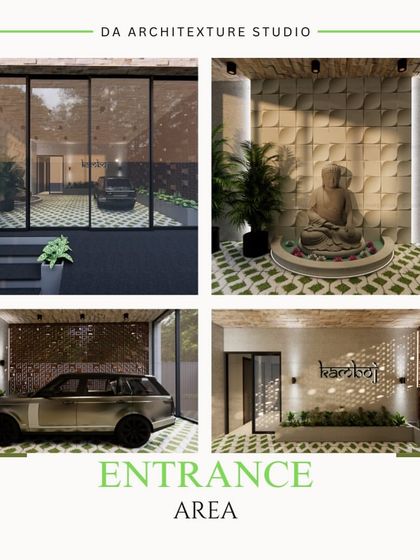 - Love bold looks? I design modern facade concepts, using natural stone, wood, vertical louvers, and big glass windows. I also add greenery and custom jali (latticework) for that special touch.