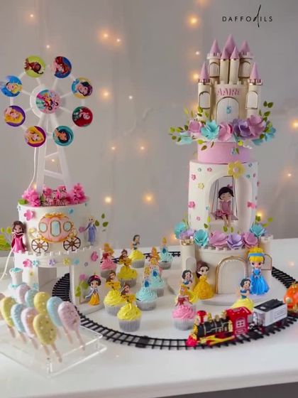 For the ultimate fairytale celebration, I handcraft magical princess castle cakes. Every detail, from the towering turrets to the delicate sugar flowers and custom figurines of beloved princesses, is meticulously created to make dreams come true.