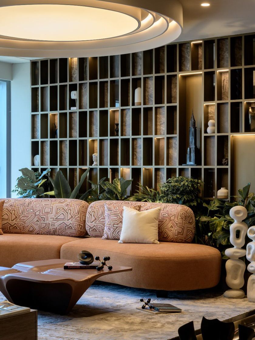 We were given a free hand to imagine a socially inclusive office, and our answer was a lounge with no workstations. This project showcases our expertise in creating luxurious, biophilic commercial interiors that prioritize collaboration and comfort, using smart material choices like marble-look laminates and custom CNC-milled furniture.