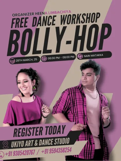 We run pop-up dance workshops in Mumbai with changing styles like Bolly-Hop, Garba, and K-Pop, open to all skill levels, with free taster sessions and special batches for kids and ladies.