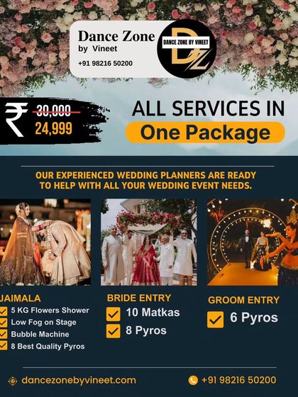 All-in-One Wedding & Event Services - Wedding choreography, bride entry choreography, Jaimala flower shower themes, decor, artist management, DJ sound, special effects – sab kuch.