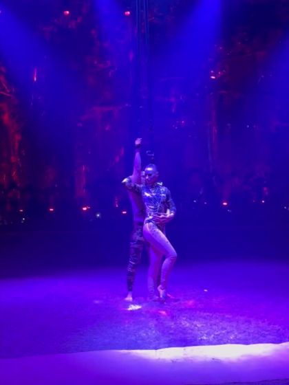 My main thing is vertical apparatus acts - silks, rope, hoop, and straps. Each one pushes me in a different way. Silks are my comfort zone for flow and those dramatic aerial drops. Rope is fast, bold, and a bit wild. Hoop gives me space for spins and shapes, and straps are pure muscle.