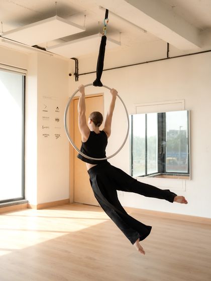 The aerial hoop, or lyra, is my space for creating beautiful shapes and dynamic spins. My solo acts focus on fluid transitions and showcasing flexibility and control within the circle.