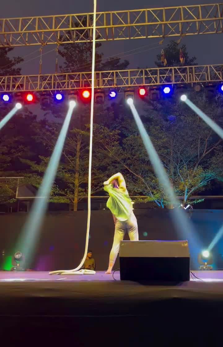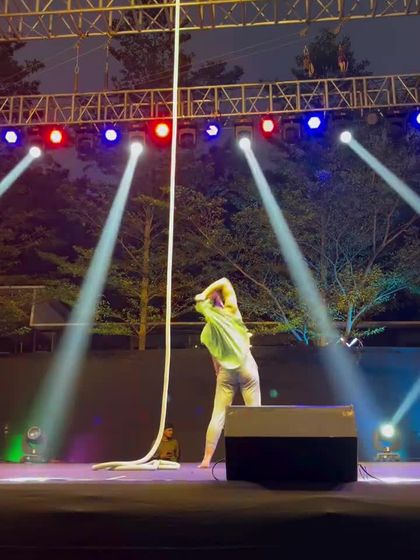 Silks are my foundation for telling stories with flow and dramatic drops. This apparatus allows for long, graceful sequences that combine climbing, wrapping, and descending in a display of strength and artistry.