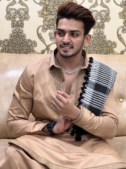 This is my trademark, a style I have perfected over generations. My Pathani suits are known for their bold yet timeless appeal, featuring distinctive cuts, premium fabrics, and intricate embroidery that make a powerful statement of heritage and personal style.