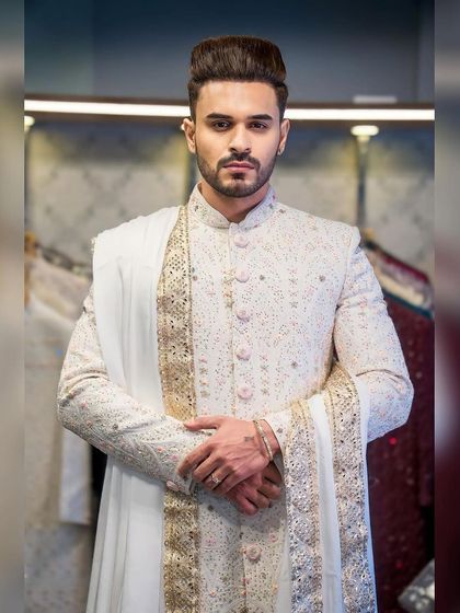 For the most important day, I create bespoke sherwanis that honor tradition while reflecting your personal style. From heavily embroidered ensembles for the groom to subtly elegant options for guests, each piece is crafted with regal fabrics, intricate detailing, and can be paired with custom pagris (turbans) and stoles.
