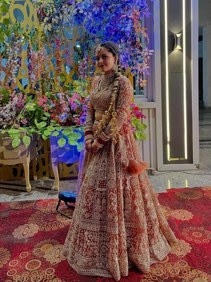 - For receptions, sangeets, or pre-wedding shoot outfits, I have sequined gowns, ball gowns, lighter lehengas in pastel shades, and floral or mirror work.