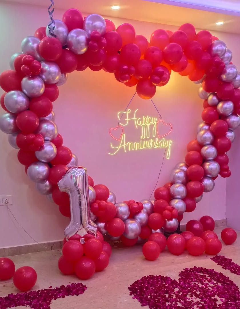Anniversary ho ya koi romantic surprise plan karna ho, hum uske liye special decoration karte hain. Heart-shape balloon frames, room mein ceiling balloons, aur fairy lights se hum aapke special din ko aur bhi khaas bana dete hain.
