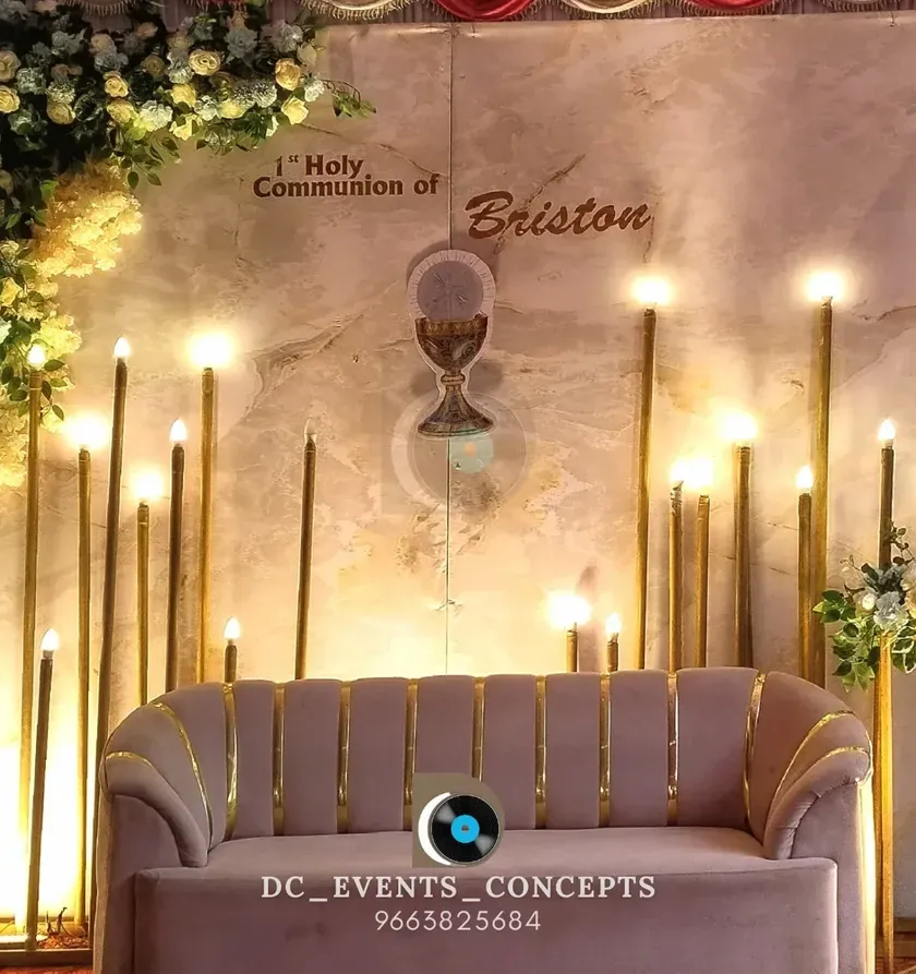 We provide respectful and beautiful decor for significant religious and cultural milestones like Holy Communions and Bhramopadesha ceremonies. Our designs range from serene and elegant setups to elaborate traditional arrangements, ensuring the setting is perfect for your sacred event.