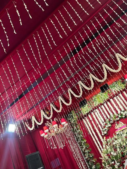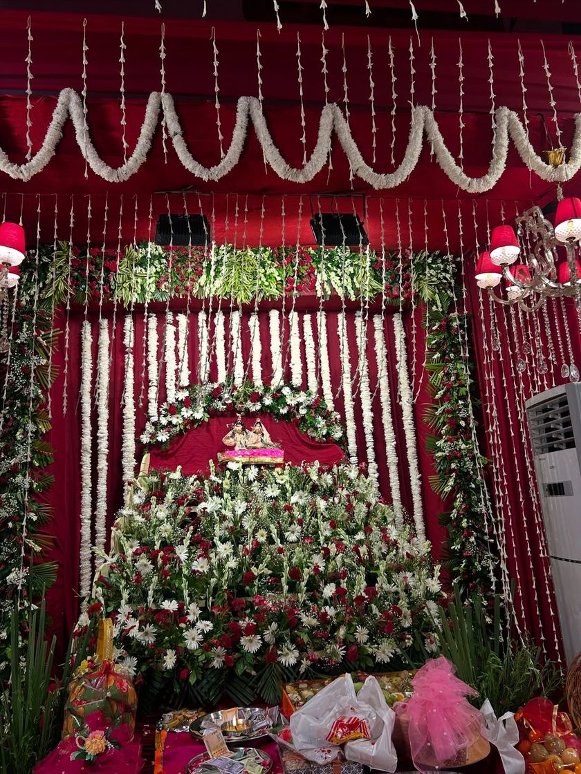 We design serene and beautiful backdrops for your Sundarkand Path, satsangs, housewarmings, and other religious ceremonies. Our setups often feature rich fabrics and traditional flowers like marigolds and jasmine to create a divine atmosphere.