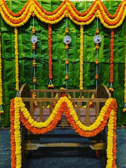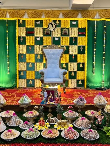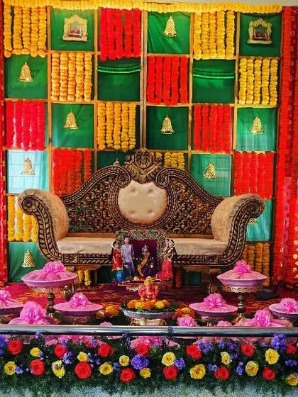 We set up custom decor for weddings, poojas, naming ceremonies, and other events, including thamboolam plates and stage setups, all matched to your tradition and budget.