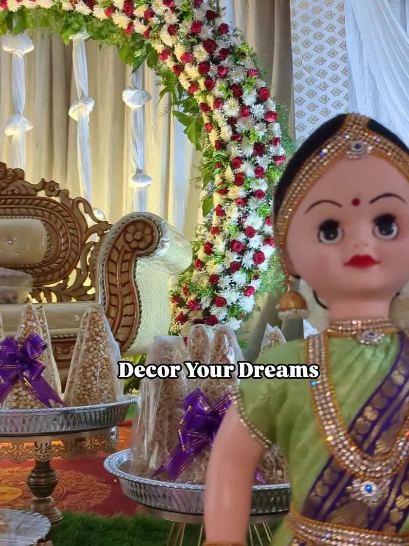 Our custom thamboolam plate decoration is what makes an event truly special. We meticulously arrange fruits, sweets, and coconuts, often adding handcrafted dolls in traditional attire for a unique touch.