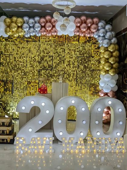 Celebrate any age with style. We offer elegant decorations for milestone birthdays, anniversaries, and other special parties, featuring shimmer walls, neon signs, circular balloon arches, and sophisticated color palettes. These setups are perfect for creating a photo-worthy backdrop for your celebration.