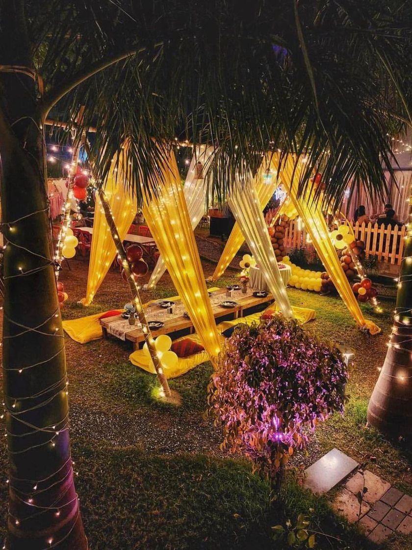 I specialize in transforming open areas like gardens, lawns, and terraces into magical party spaces. From cozy canopy seating with fairy lights to large-scale themed decorations for farmhouse parties, I can create the perfect outdoor celebration for you.