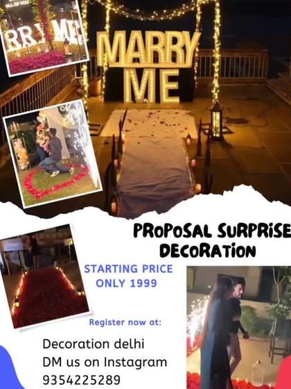 If you’re planning to propose, I’ll help you set the scene so your partner feels the love. Picture a Marry Me marquee setup, with glowing letters and a path lined with rose petals. Fairy lights everywhere, cozy cabana corners, cold pyros for that dramatic “yes!” moment. I get that some want full filmi scenes, others want it simple - you tell me, I set it up.