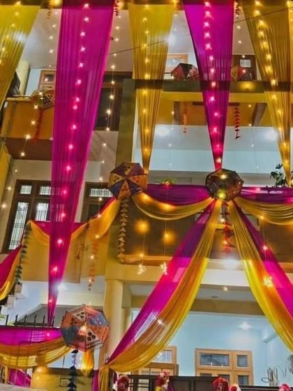 We provide complete decoration services for wedding events like Haldi, Mehandi, and stage setups across Delhi NCR. We specialize in custom, theme-based draping designs instead of traditional tents.