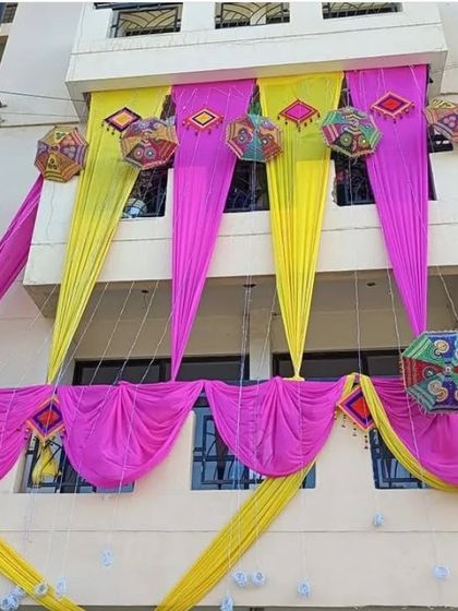 We provide complete house decoration services to create a festive atmosphere from the moment your guests arrive. This includes decorating building exteriors, balconies, and entrance ways with vibrant fabrics and traditional hangings.