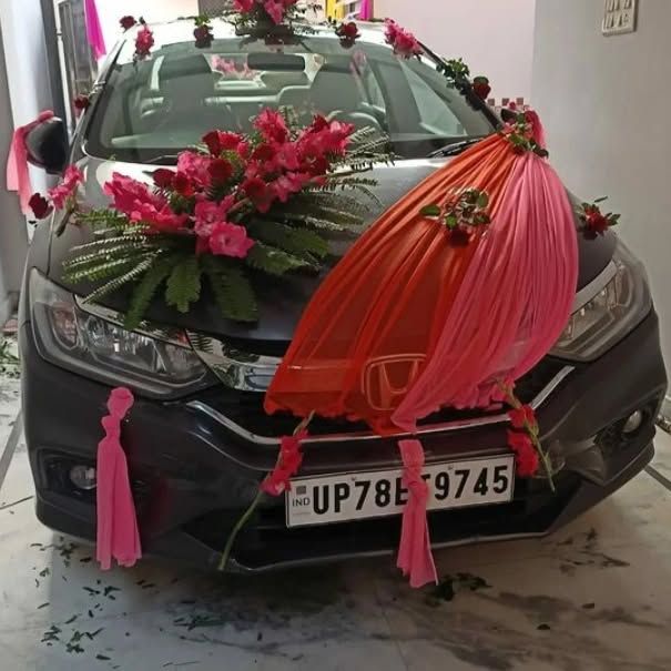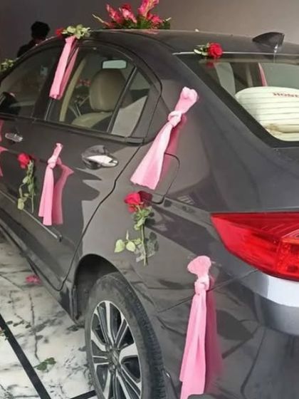 We arrange for the decoration of your wedding car for the baraat or vidaai. We provide options for both modern and traditional styles, using fresh flowers, artificial flowers, ribbons, and fabric draping to match your preference.