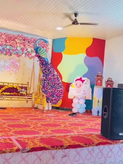 Have a specific theme in mind? Hum kar denge! We love a creative challenge and can design unique decorations, like this elegant all-white setup or a traditional stage with floral peacocks and a jhula.
