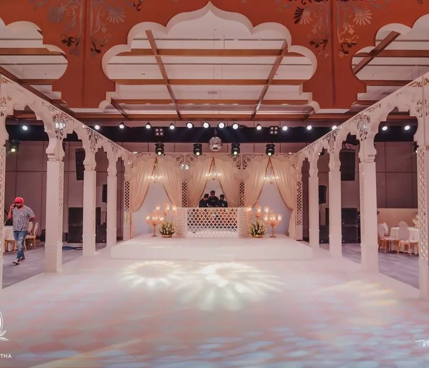 For couples who dream of a fairytale wedding, I specialize in creating opulent, palace-inspired settings. I use architectural elements like grand arches, intricate backdrops, and luxurious lighting to transform large ballrooms into scenes of modern-day royalty, ensuring every detail reflects a majestic love story.