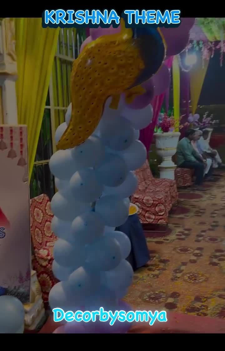 For auspicious occasions and birthdays, I offer beautiful Krishna, Kanha, and Radha Krishna themes. These setups feature traditional colors, divine elements like peacock feathers and flutes, and a serene, celebratory atmosphere.