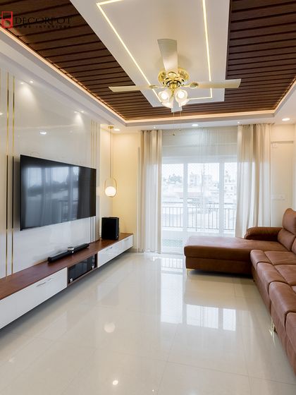 - Living and dining rooms with smart layouts, TV units, and partitions
