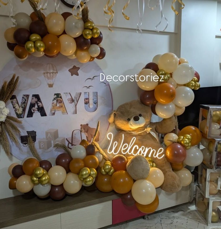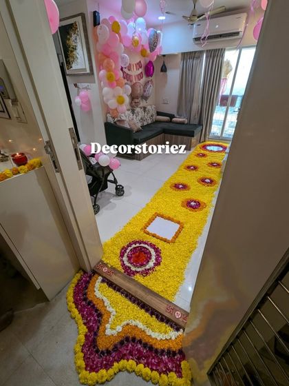Celebrate the arrival of your newborn with a beautiful and heartwarming home decoration. I create soft and dreamy setups to make this first welcome a cherished memory. My services include balloon arrangements in pink, blue, or neutral colors, as well as traditional flower rangoli pathways.