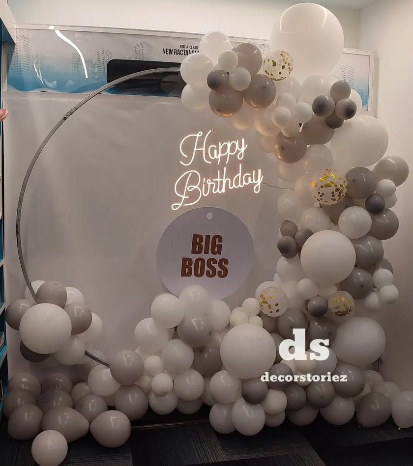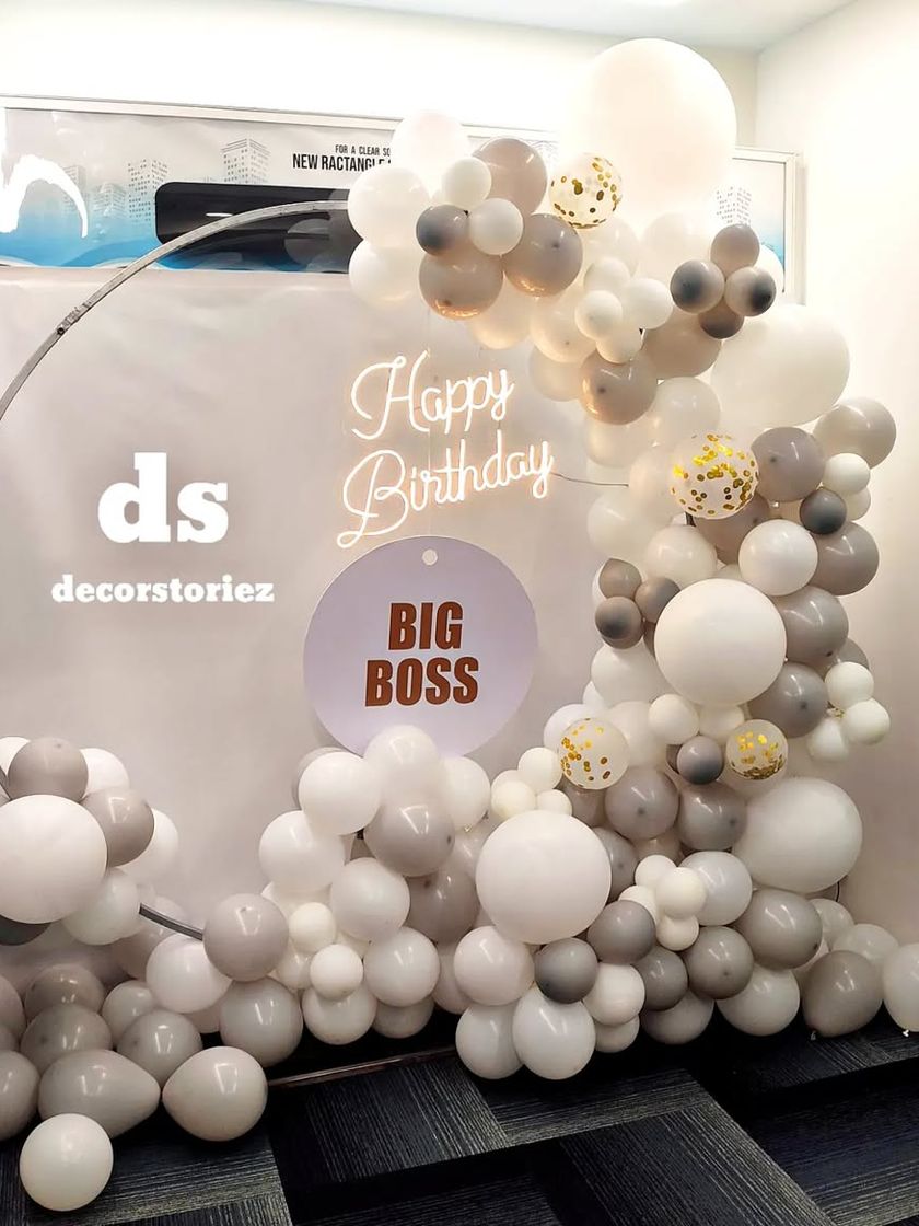 We design eye-catching backdrops that become the centerpiece of your office party. Our service includes creating modern ring frames with custom text and glamorous sequin walls, complete with neon signs and balloon garlands to match your event's theme.