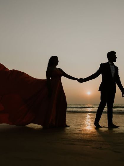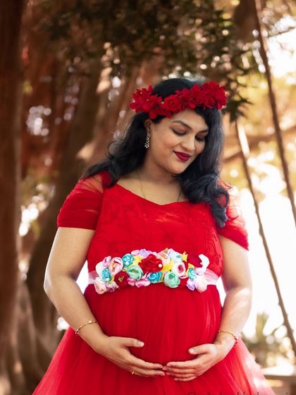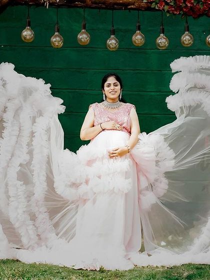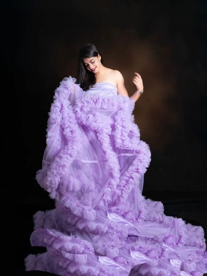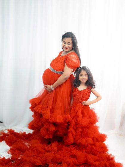 Outfit Rentals for Photoshoots - Rent designer maternity gowns, pre-wedding trail gowns, ruffle lehengas, and matching couple blazers.