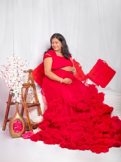 Find your perfect photoshoot outfit from our 150+ rental gowns, available in sizes 30 to 52. Our in-house tailor ensures a custom, hassle-free fit for your pre-wedding or maternity shoot.