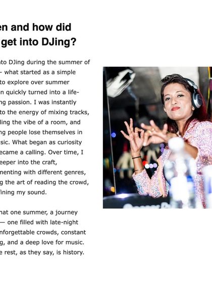 This is a look at the woman behind the console. It includes my professional photoshoots, press features, and my philosophy as an artist and entrepreneur. My brand is built on confidence, ambition, and a relentless drive to dominate the stage.