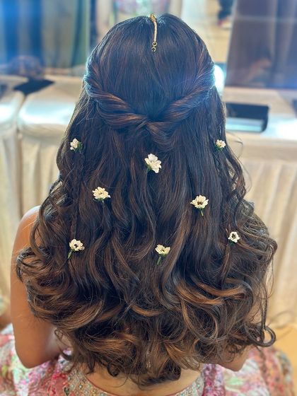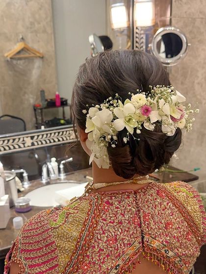 Brides seeking sophisticated, customized hairstyles for their wedding day and pre-wedding events, particularly those planning traditional Indian weddings or destination celebrations.