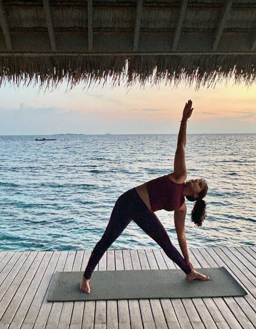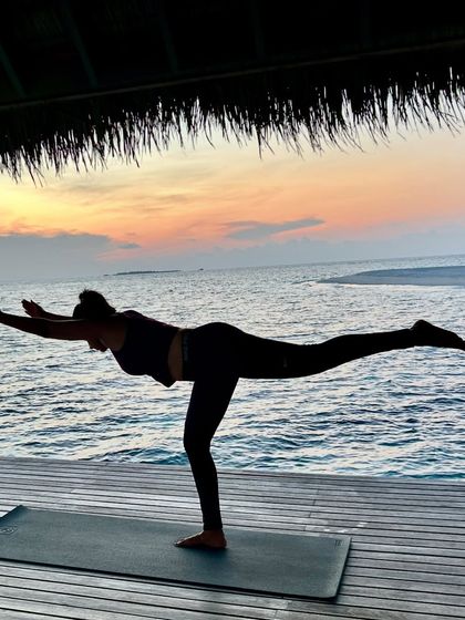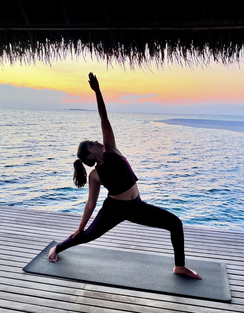 Practicing by the ocean is one of my greatest joys, connecting movement with the calming rhythm of nature. These moments from the Maldives showcase the peace and focus that yoga can bring, no matter where you are.