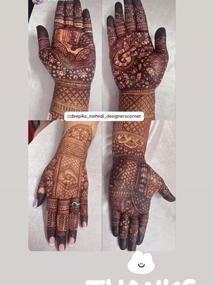 This is a special selection of my work that shows the heart of what I do. From telling your unique love story with personalized portraits to creating grand, traditional designs, this is the kind of beautiful, detailed mehndi I love to create for my brides. Each design is made with a lot of love and care.