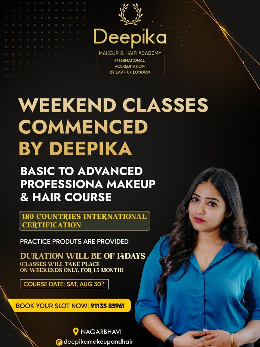 My course includes an international certification in hairstyling. You will master over 35 styles, from intricate South Indian bridal braids with floral art to messy buns, reception curls, and elegant updos. We cover everything from hair prep and product knowledge to final styling.